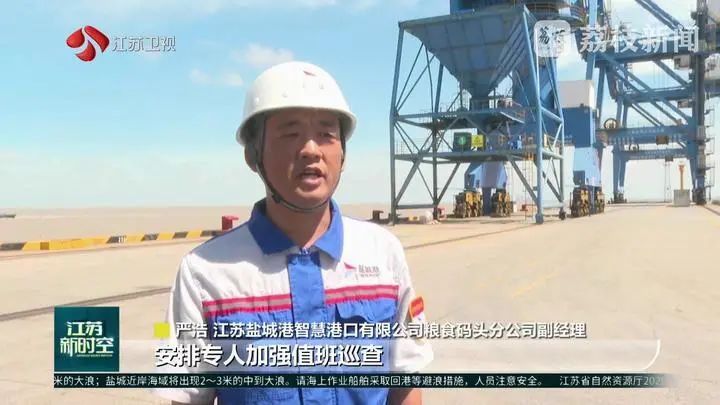 江蘇鹽城港智慧港口有限公司糧食碼頭分公司副經(jīng)理嚴浩說:“安排專人加強值班巡查,全方位、不間斷地排查隱患,確保各項防護措施萬無一失。”
